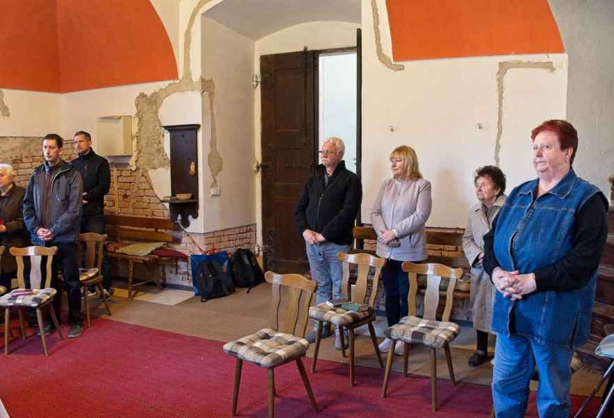 Poté jsme společně prožili mši svatou v nedaleké vesničce Dyje, kde hlavním celebrantem byl P. Jan Sokulski. Tam mohli augustiniáni obdivovat také již téměř obnovený Chrám zbičovaného Krista.