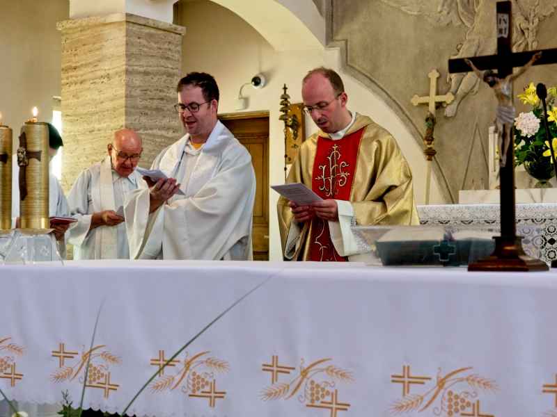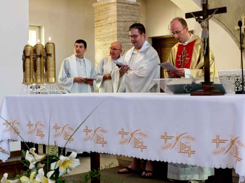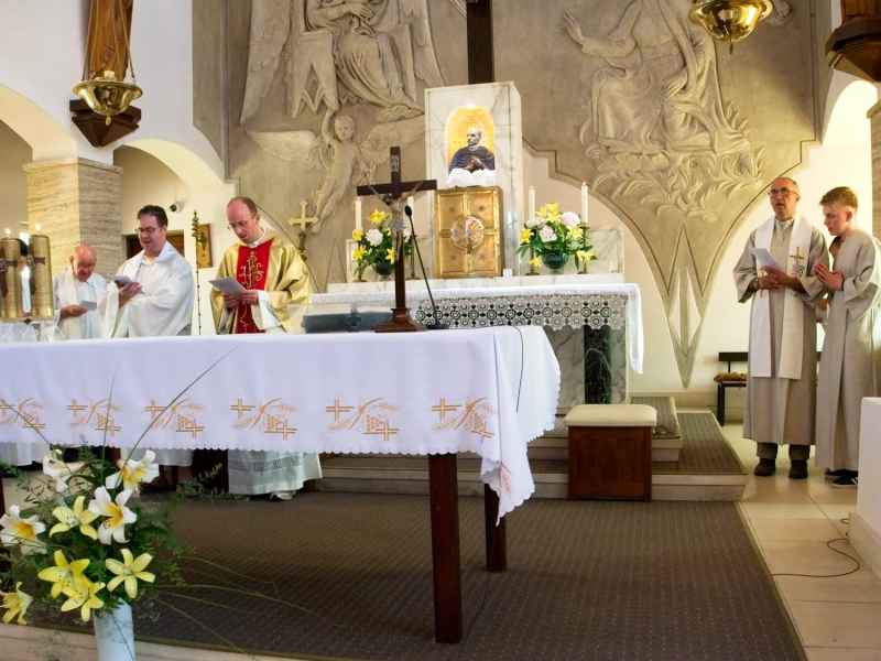 Hlavním celebrantem byl rakouský novokněz P. Richard Hansl. Na jeho "česko-německé primiční mši svaté" kázal redemptorista P. Dominic O'Toole. Na závěr mše svaté koncelebranti zakončili bohoslužbu v kapli sv. Klementa, na místě jeho narození. Věřící měli možnost obdržet také primiční požehnání od P. Richarda Hansla. Na této mši svaté se účastnili také místní věřící z Tasovic, Hodonic a Krhovic.