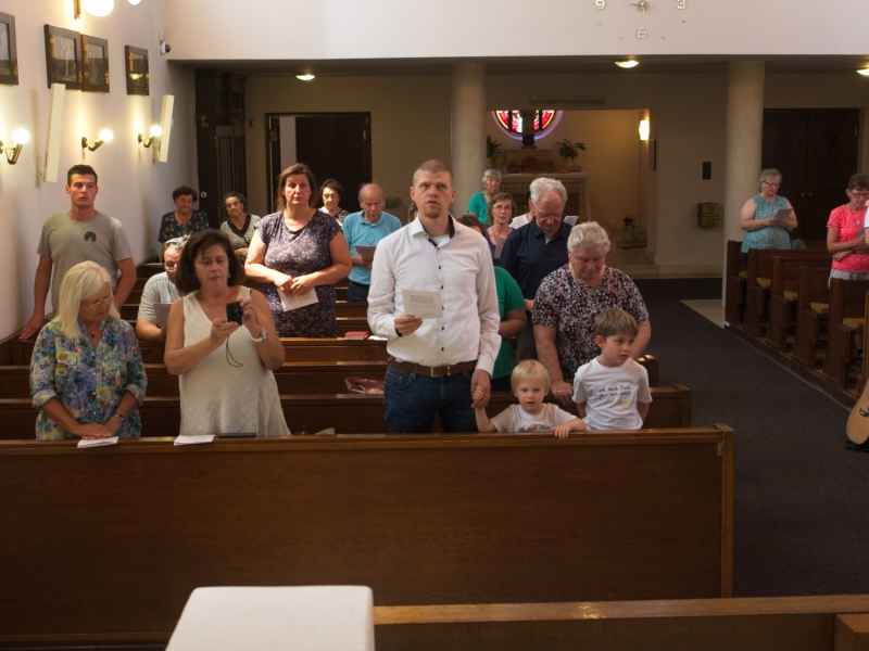 Po mši svaté se všichni společně setkali na občerstvení a přátelském popovídání si v klášterním sálu redemptoristů.