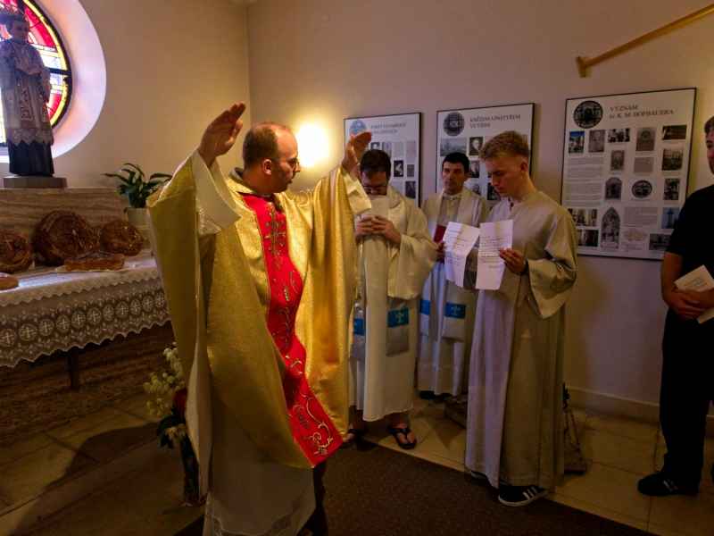 Kromě pěších poutníků do Tasovic dorazila skupina poutníků na kolech. Kromě rakouského redemptoristy to byli také studenti z Ukrajiny se svým rektorem.