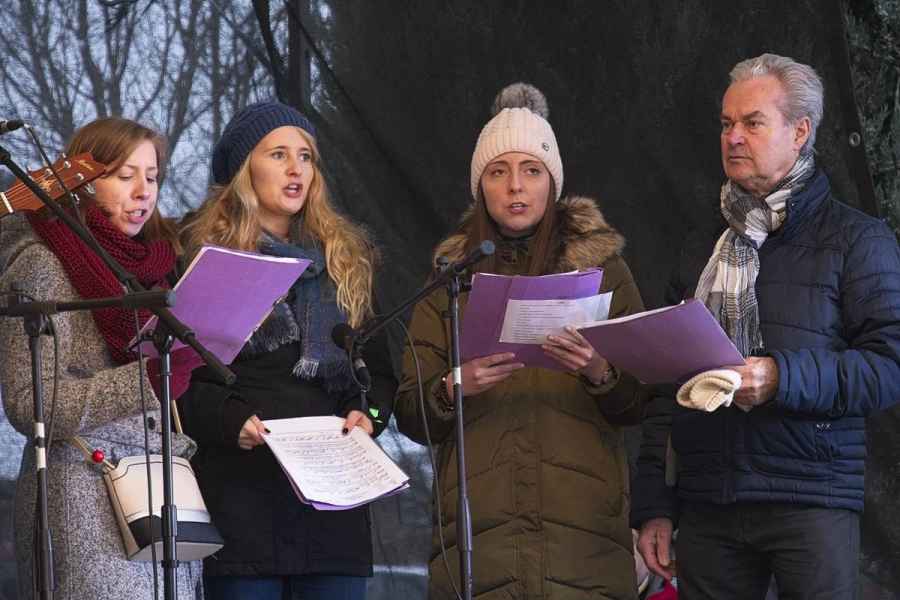 P. Jan krátké slovo zakončil požehnáním vánočního stromu, který se v 17:00 hodin rozzářil do chladné prosincové noci. Mezitím vystoupilo několik pěveckých sborů a také cimbálovka. Lidé se zahřívali dobrým slovem, svařákem nebo jinými horkými nápoji. V blízkém kulturním domu různé spolky prodávaly své výrobky, nabízeli dětem zdobení perníčků apod.