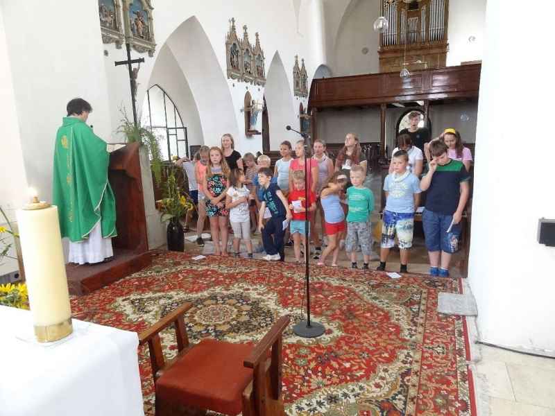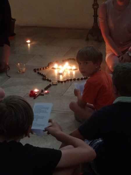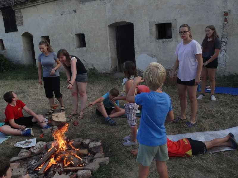 Naším hlavním tématem byl svatý růženec. Děti zábavnou formou pomocí kolektivních her po 4 dny objevovaly jednotlivá tajemství růžence. Dny tak byly plné zábavy, smíchu, dobrého jídla...nechyběly ani již tradiční součásti jako ranní rozcvičky, vodní hry, hra na Andílky, táborák, stezka odvahy a mnohé další. Při večerních adoracích v místním kostele jsme se pak dětem při svitu svíček pomocí písní, modliteb, vlastních slov a příběhů, snažily přiblížit, co pro nás, křesťany, znamená Boží láska.