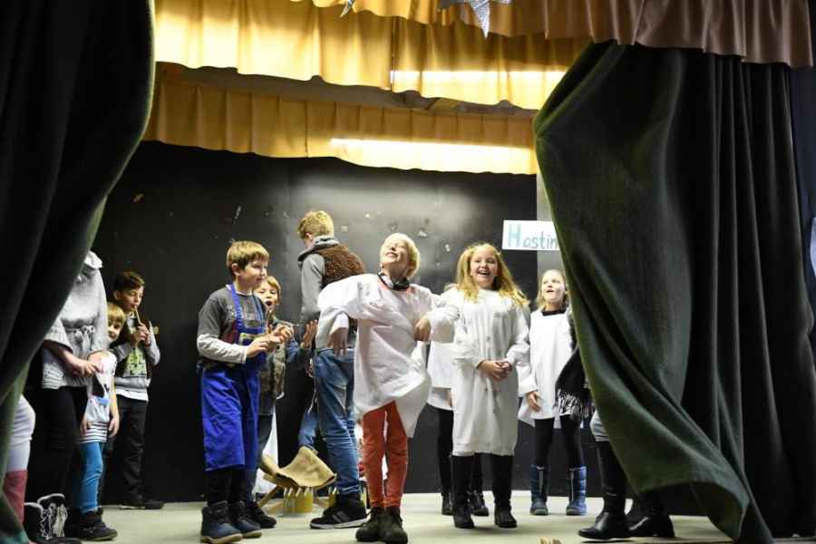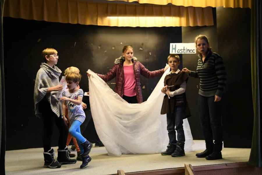 Po přestávce, na které mohli přítomní ochutnat víno místních vinařů, koupit si perníčky nebo jiné drobnosti, děti předvedli další hru - dokonce v "cizím jazyce" :-)