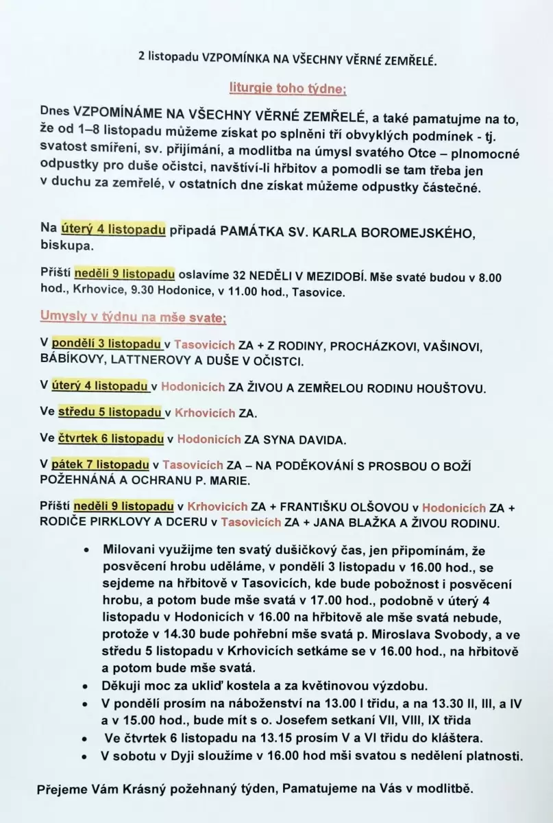 2. listopadu - Vzpomínka na všechny věrné zemřelé