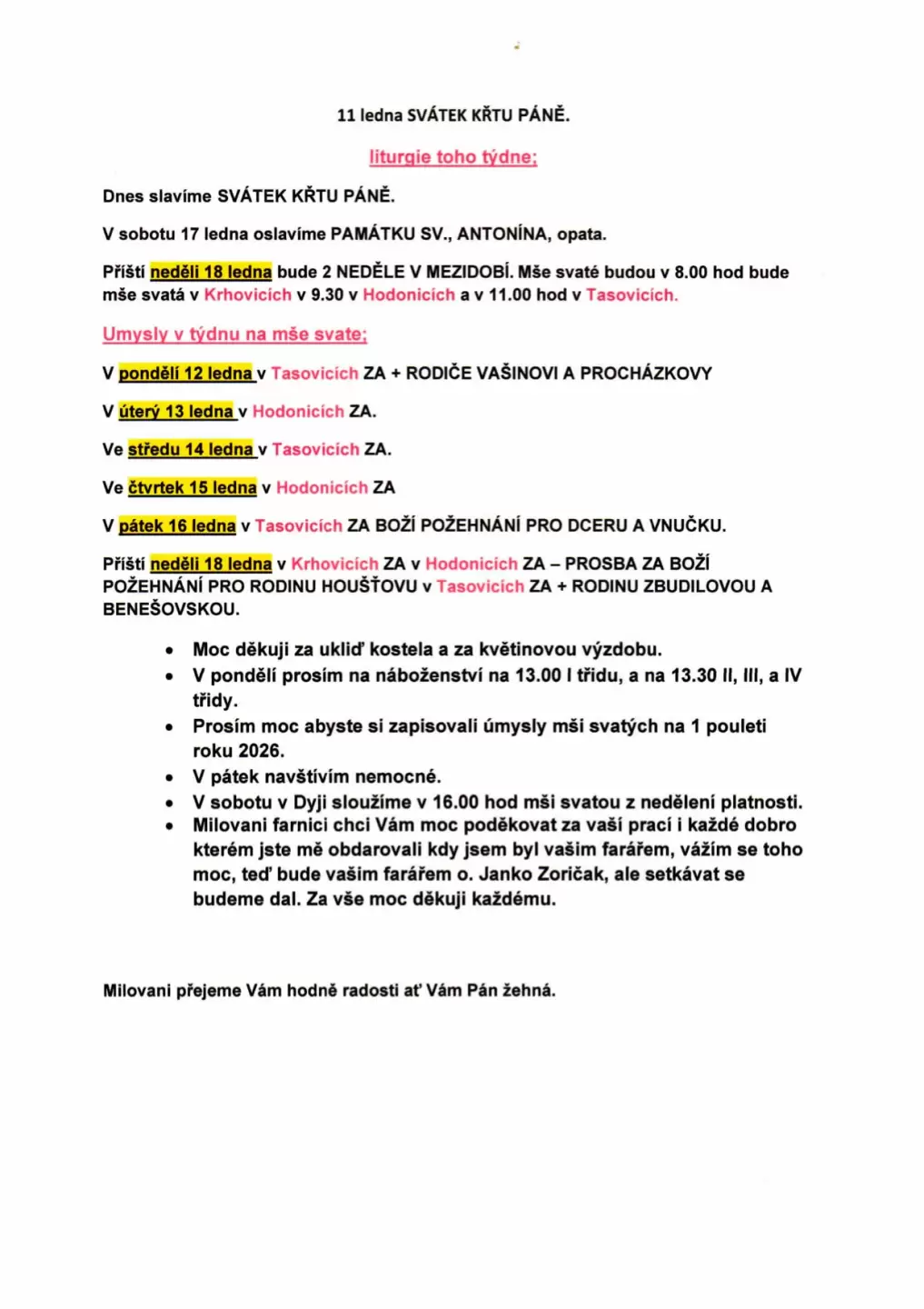 11. ledna 2026 - Svátek Křtu Páně