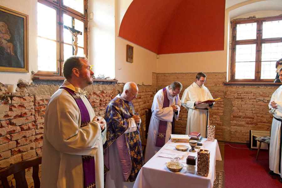Poté jsme společně prožili mši svatou v nedaleké vesničce Dyje, kde hlavním celebrantem byl P. Jan Sokulski. Tam mohli augustiniáni obdivovat také již téměř obnovený Chrám zbičovaného Krista.