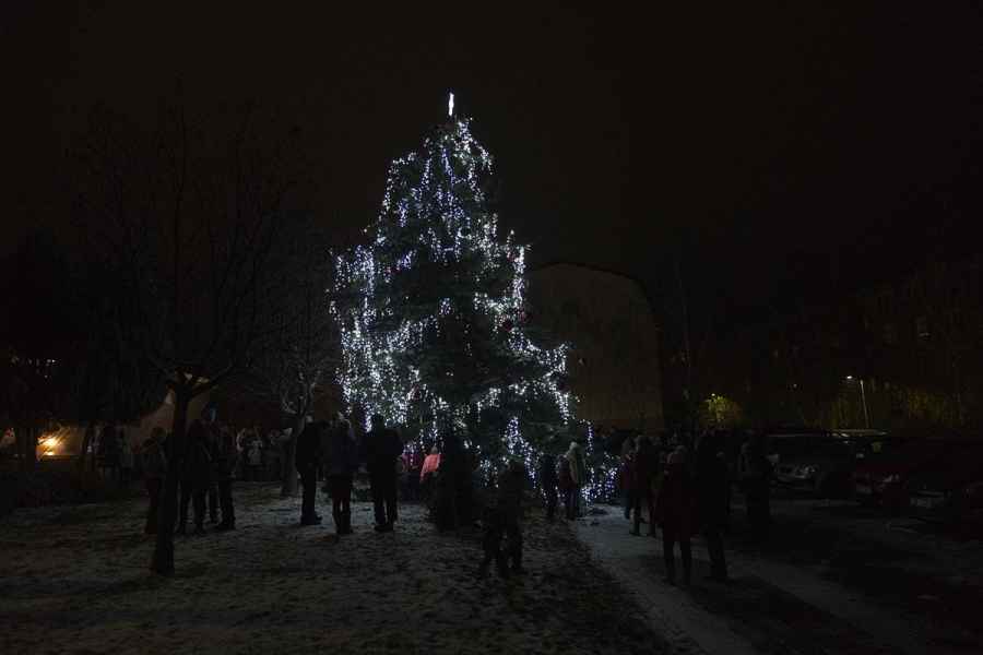 P. Jan krátké slovo zakončil požehnáním vánočního stromu, který se v 17:00 hodin rozzářil do chladné prosincové noci. Mezitím vystoupilo několik pěveckých sborů a také cimbálovka. Lidé se zahřívali dobrým slovem, svařákem nebo jinými horkými nápoji. V blízkém kulturním domu různé spolky prodávaly své výrobky, nabízeli dětem zdobení perníčků apod.