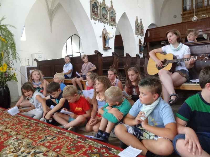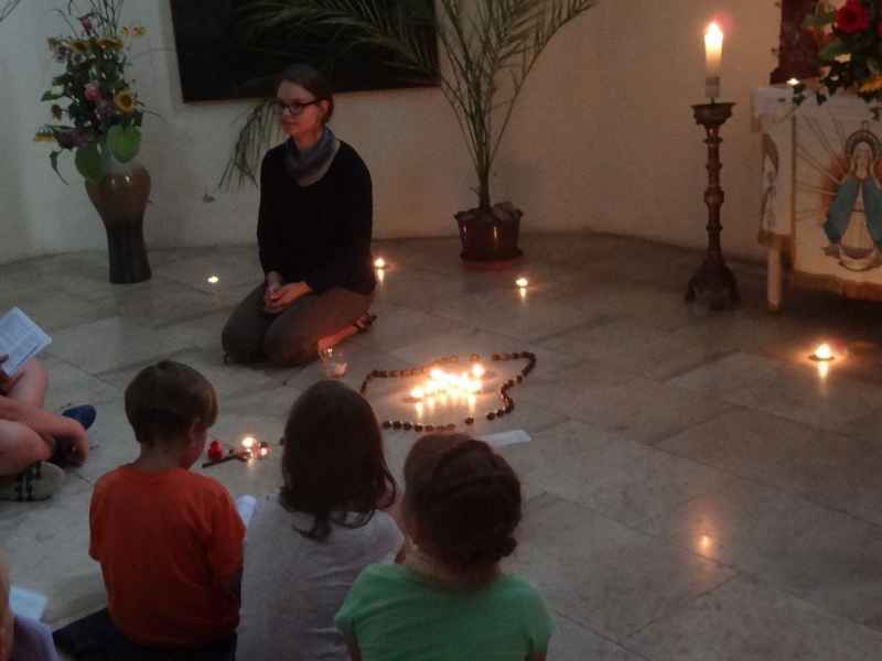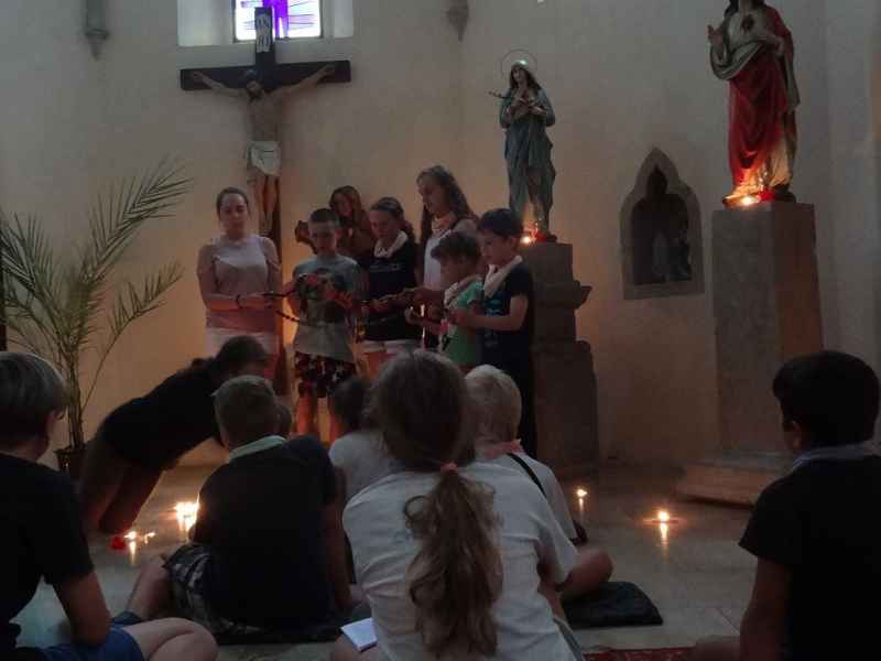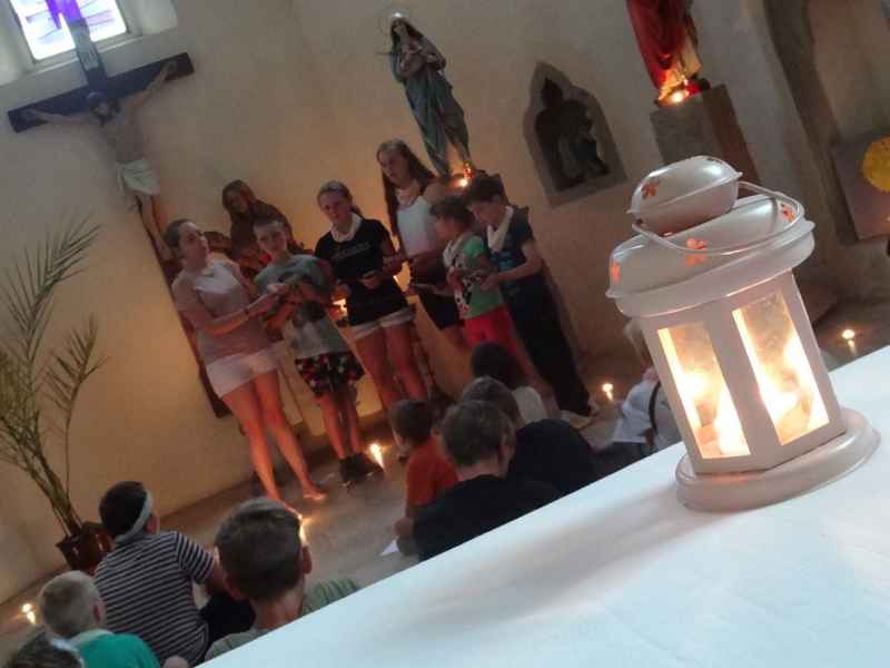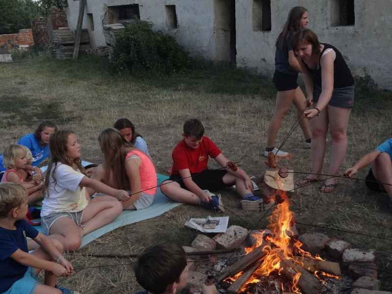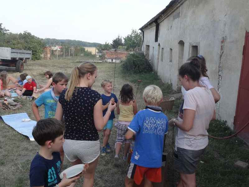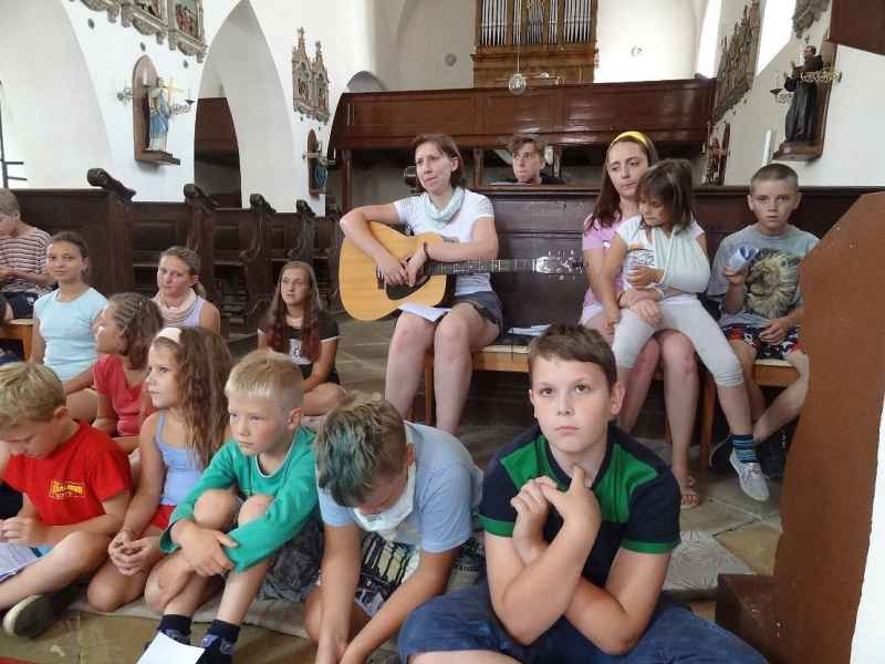 Naším hlavním tématem byl svatý růženec. Děti zábavnou formou pomocí kolektivních her po 4 dny objevovaly jednotlivá tajemství růžence. Dny tak byly plné zábavy, smíchu, dobrého jídla...nechyběly ani již tradiční součásti jako ranní rozcvičky, vodní hry, hra na Andílky, táborák, stezka odvahy a mnohé další. Při večerních adoracích v místním kostele jsme se pak dětem při svitu svíček pomocí písní, modliteb, vlastních slov a příběhů, snažily přiblížit, co pro nás, křesťany, znamená Boží láska.