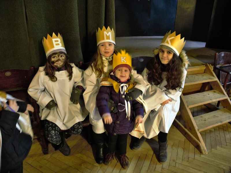 Mámy a místní asistentky, které pomáhají s dětmi ve farnosti, připravily děti na tříkrálovou sbírku - ať už plánem "pochodu", vyrobenými korunkami na míru, oblékáním do rochet nebo pomalováním obličeje na černo. Bylo 7 skupin po tři - tedy 21 králů se vyřítilo vybírat daně na chudé. V dalších kostelích sbírka probíhala do 14. ledna.
