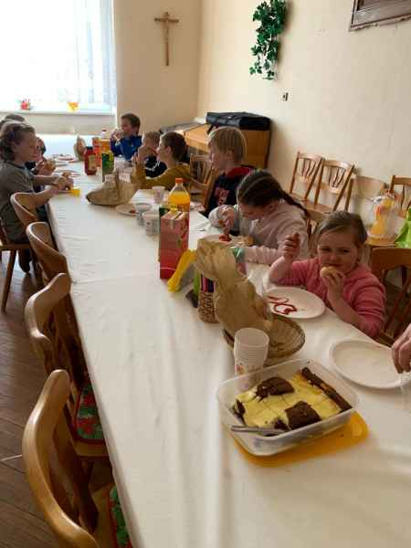 Nechyběla ani přestávka s dobrou svačinou. Dětem i rodičům se tvořivá dílna velmi líbila. Zůčastnilo se 13 dětí a jeden dospělý. Věříme, že podobné akce se budou v klášteře redemptoristů opakovat.